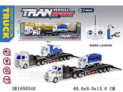 1:48四通灯光警察拖挂遥控车 两款混装 包电